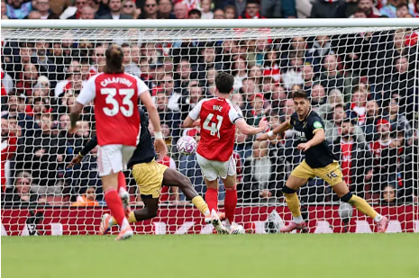 Declan Rice hittade nätet precis innanför West Hams straffområde efter att Alphonse Areola hade räddat ett skott från Eberechi Eze. Mikel Artetas lag drar ofta nytta av engelsmannens mer avancerade mittfältsroll, och han visade upp sin förmåga som straffbåslöpare på lördagen.